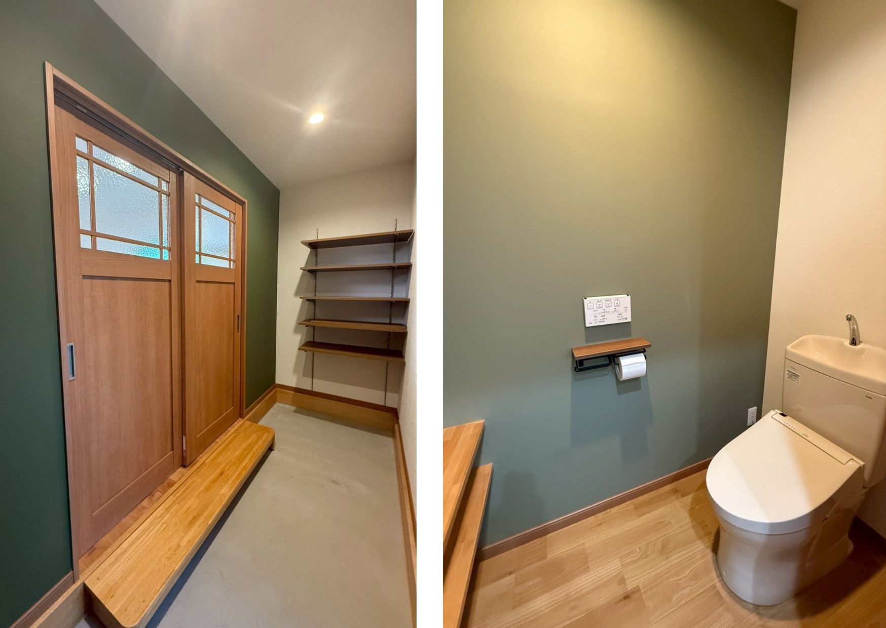 施工事例 2025.12.01 記憶を受け継ぎ、今を生きる家 元々ご実家のあった敷地に建替えをされご夫婦の生活様式にあわせ必要なスペースを確保した住宅。既存宅地の限りある空間をふたりで楽しく過ごすには必要なものだけ、心地よく。 夫婦で過ごす“ちょうど良い” 家 を目指しました。 Detail 木造平屋建て(在来工法) 延床56.47㎡ (17.08坪) 屋根:鋼板葺き 外壁:サイディング 設計住宅性能評価認定住宅 耐震等級3(最高等級)耐風等級2(最高等級)